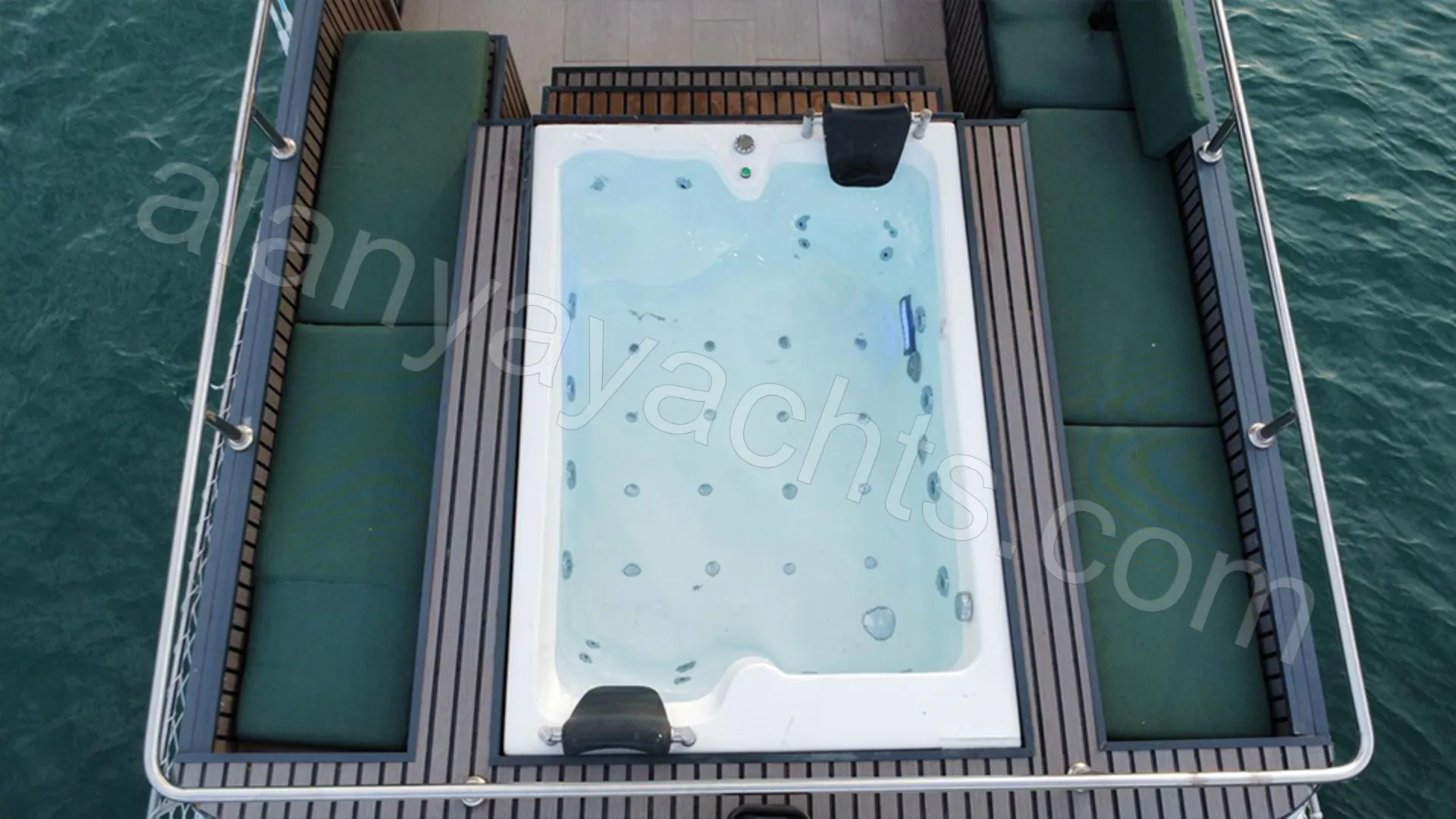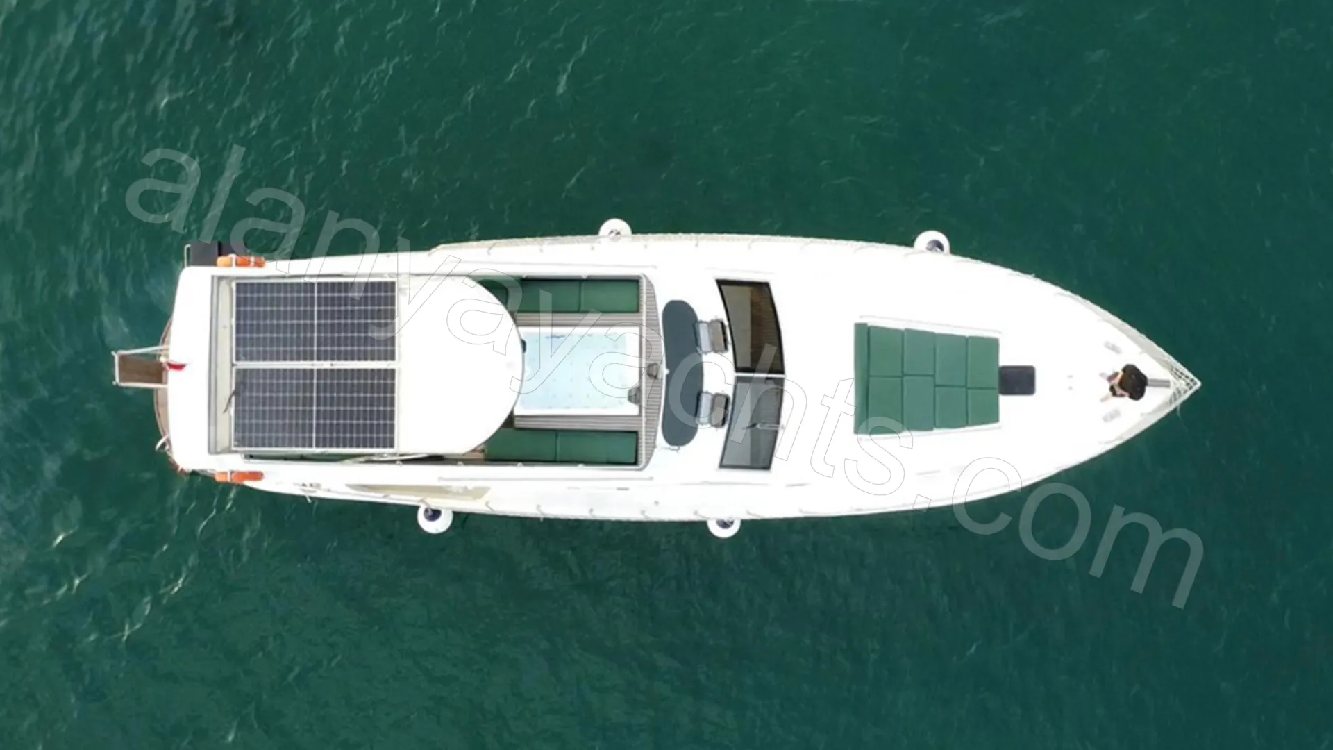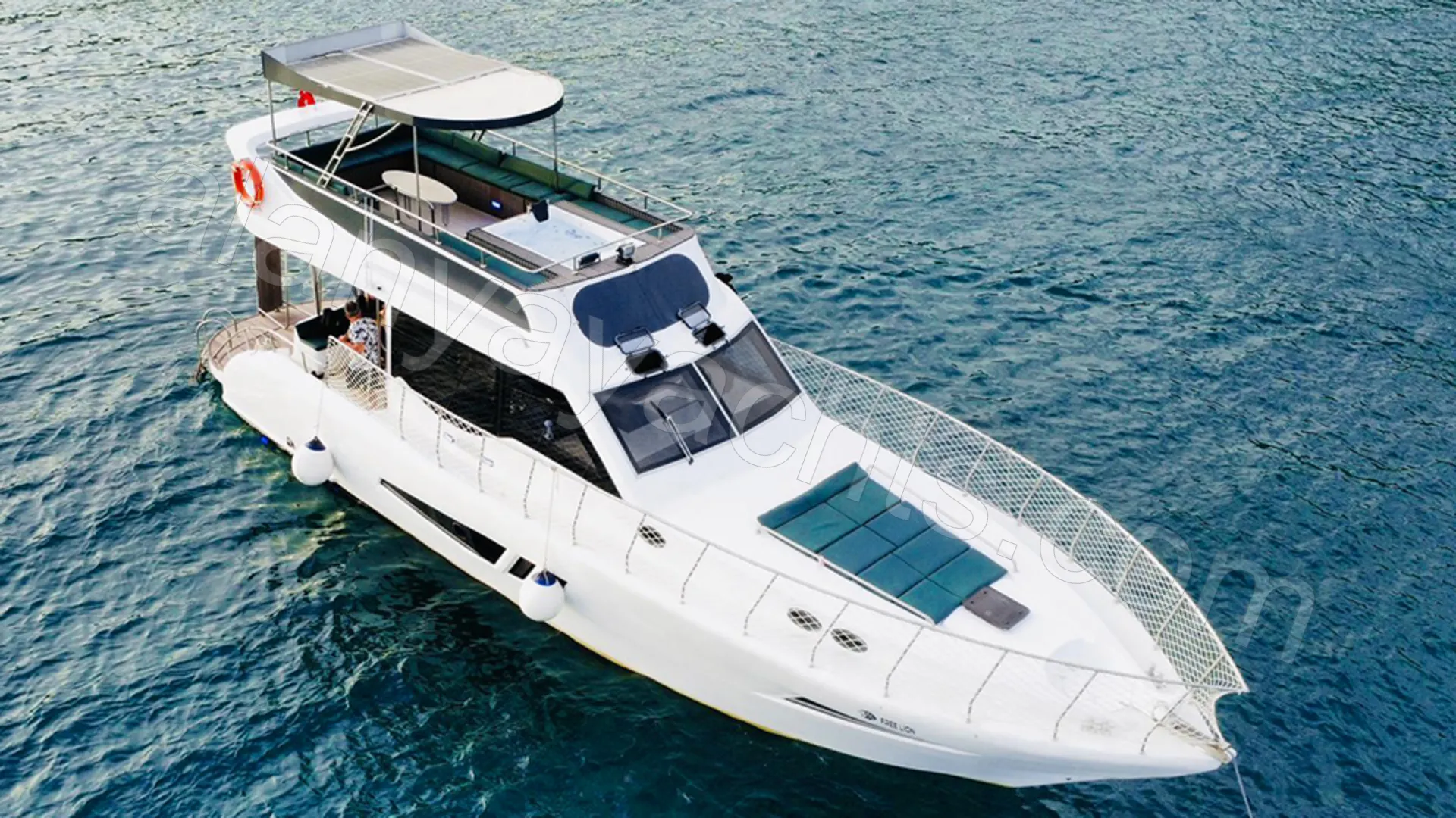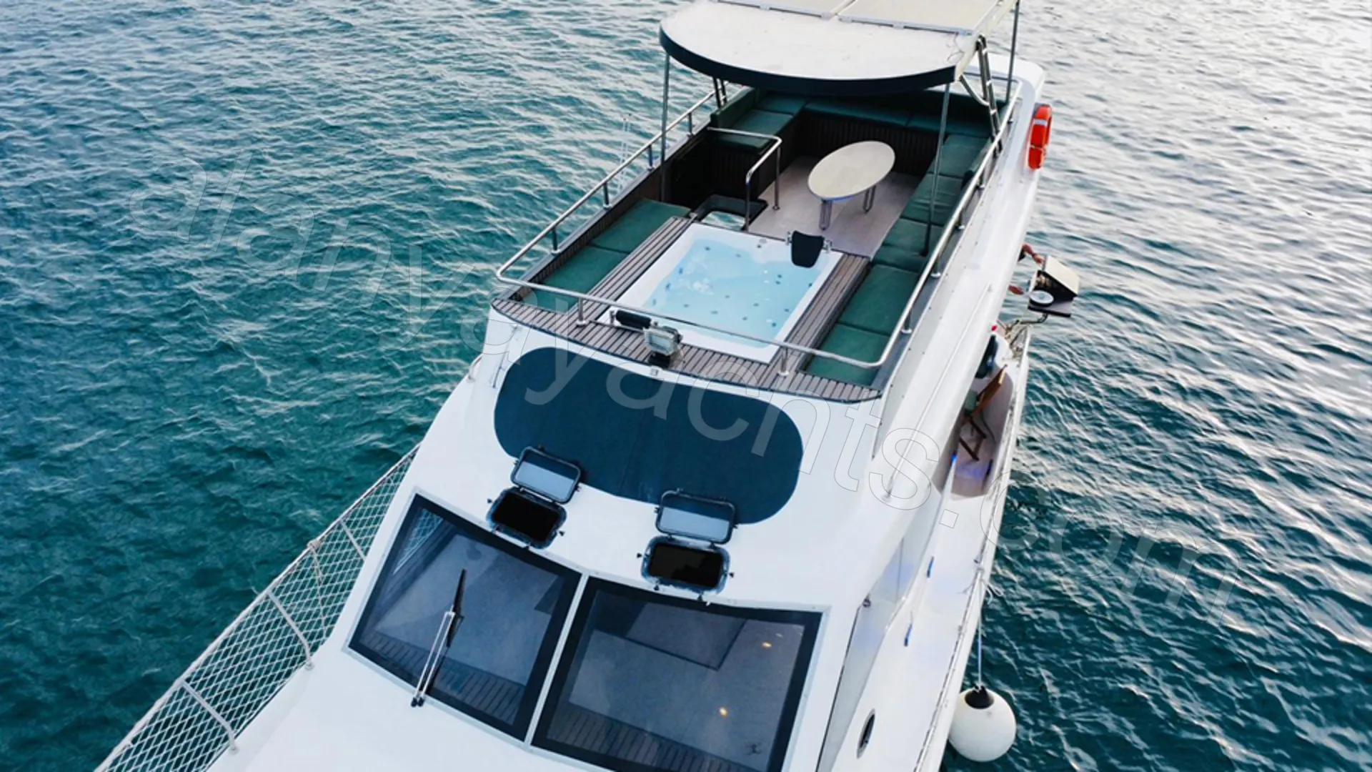 Free Lion, bygget i 2025, er en moderne yacht med jacuzzi på flybridge – luksus og avslapning for opptil 25 gjester.