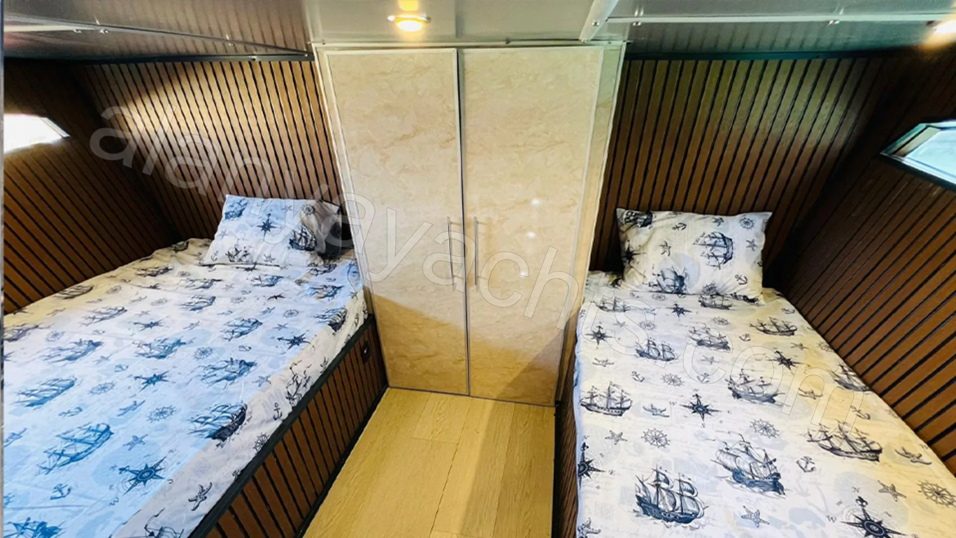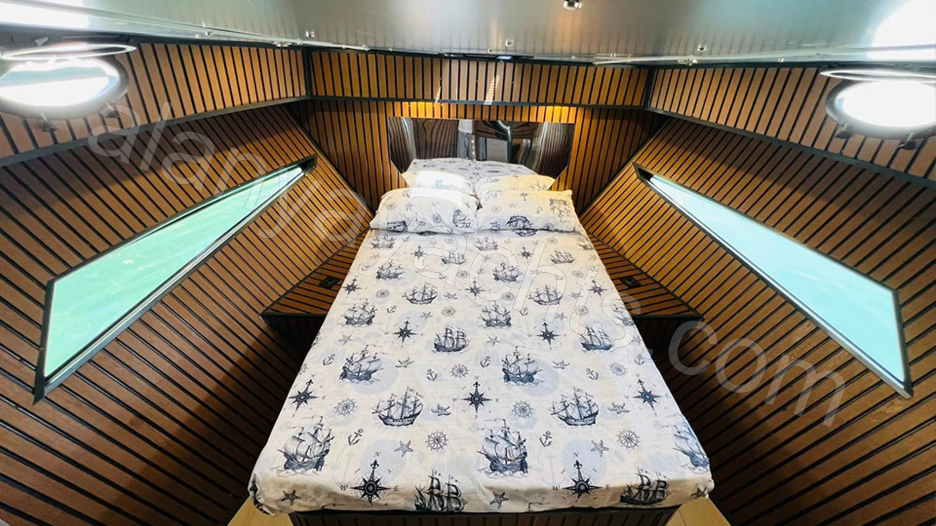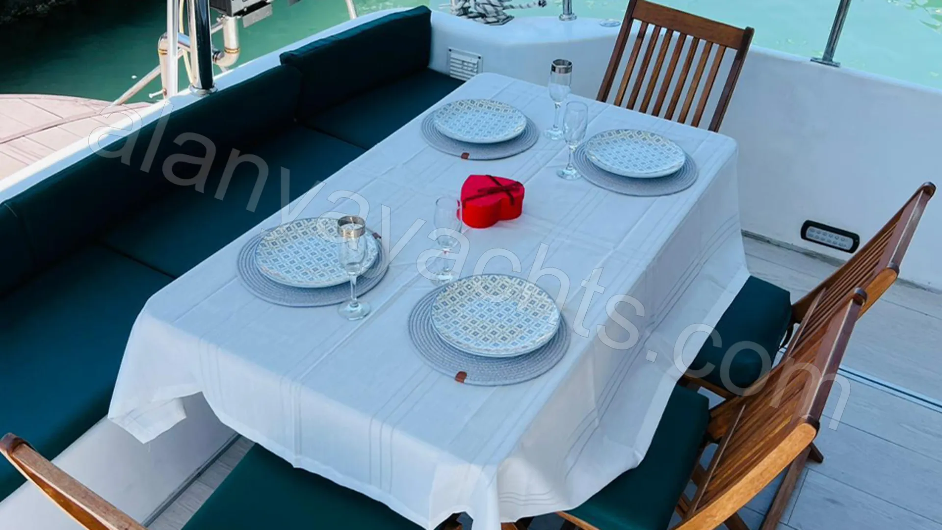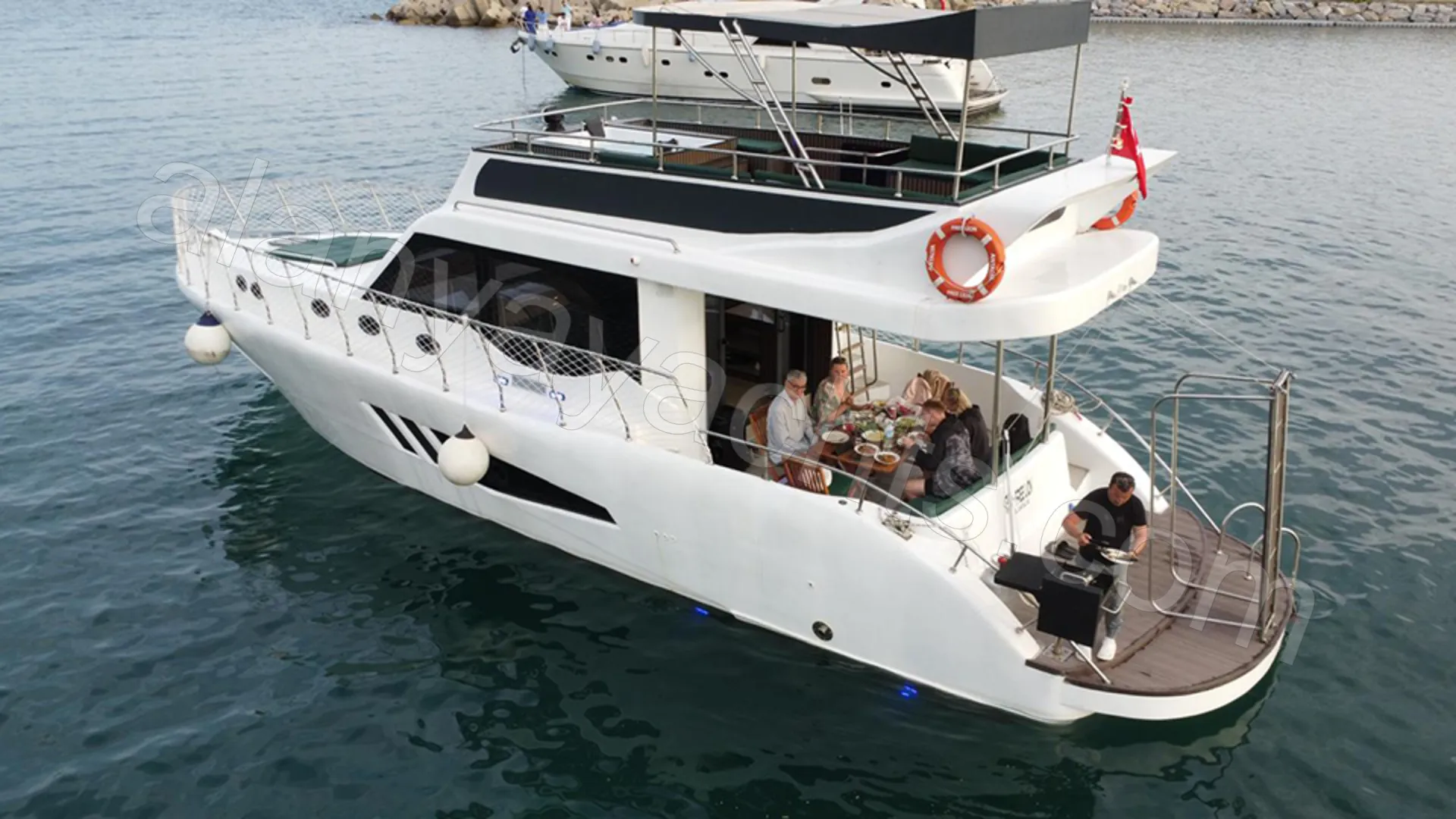Free Lion, bygget i 2025, er en moderne yacht med jacuzzi på flybridge – luksus og avslapning for opptil 25 gjester.