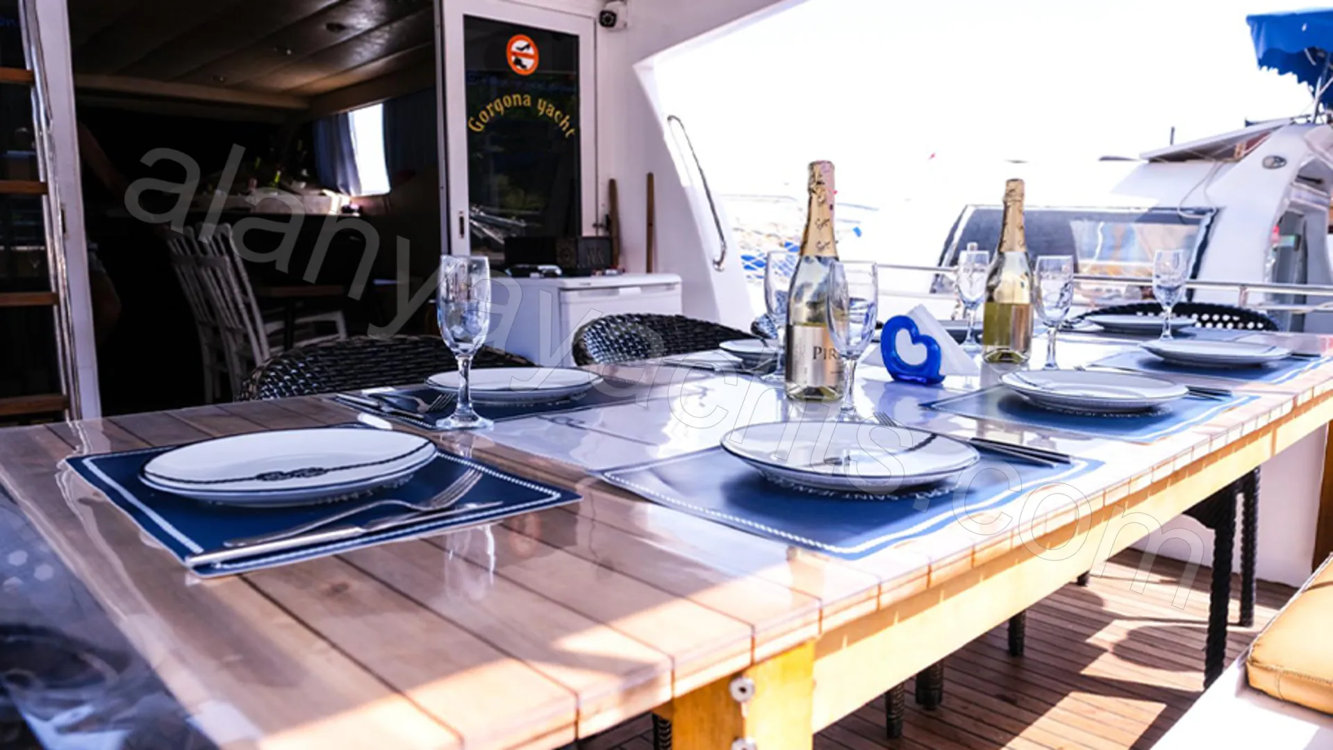 Gorona-yachten i Alanya havn er kjent for sin erfarne kaptein og fornøyde gjester – ideell for rimelig komfort til sjøs.