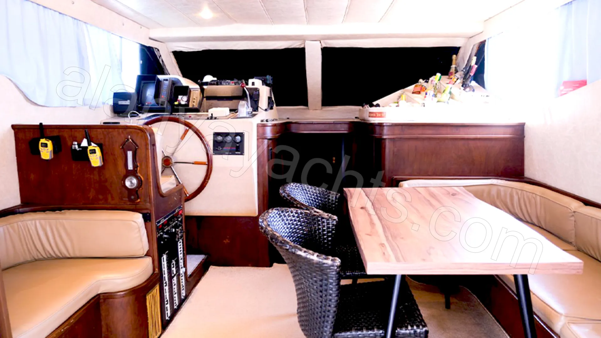 Plass til opptil 12 gjester, med et stort fordekk som passer for avslapning og sosialt samvær. Interiøret er designet for ro og komfort.