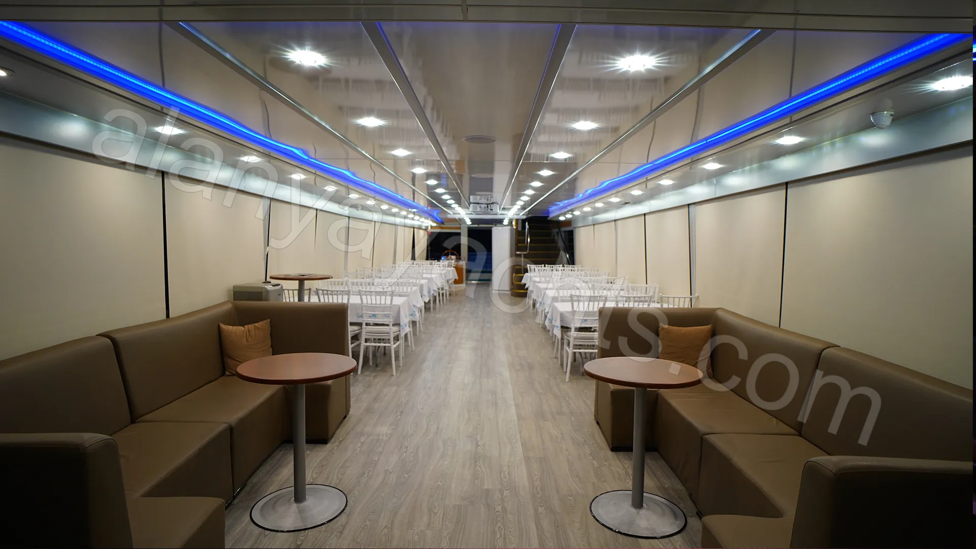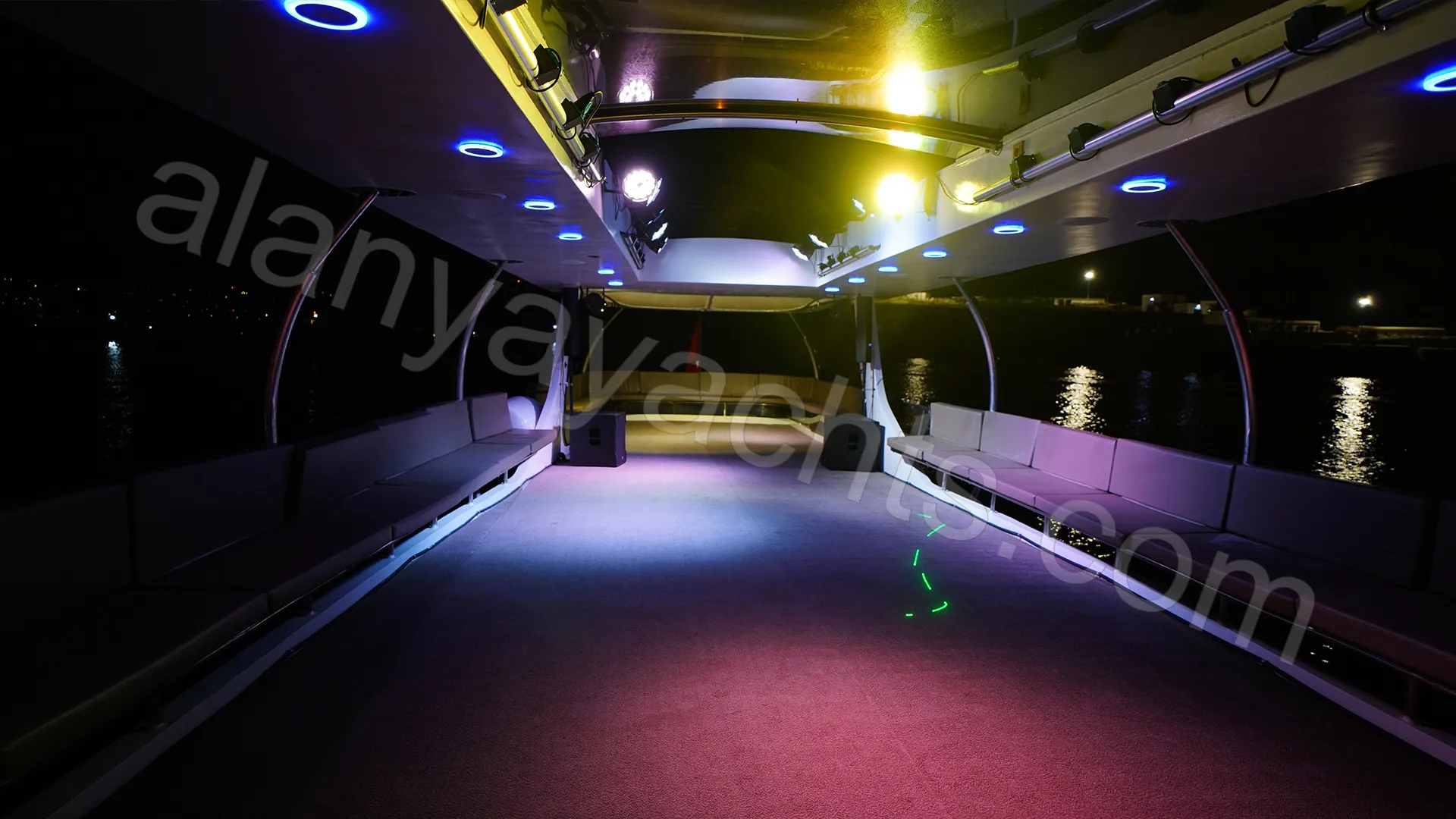 Both programmes depart from the port of Alanya. The daytime programme is ideal for corporate meetings and daytime events with a relaxed atmosphere, sunbathing, swimming stops and panoramic coastal views. The evening programme begins at sunset and transforms the LED- and laser-lit deck into an open-air dance floor with a live DJ set.